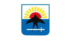 The Cozumel flag displays a swallow on a blue and white background. The blue background represents the sea, while the white represents the purity of the Maya.[18] The sun represents the position of the island in the eastern region of the country, and the swallow indicates the meaning of the word Cozumel in the Mayan language.[19] The sword is Spanish and represents the conquest of the island by the Spaniards in 1521.[18]