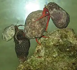 The Caribbean hermit crab is mainly terrestrial.