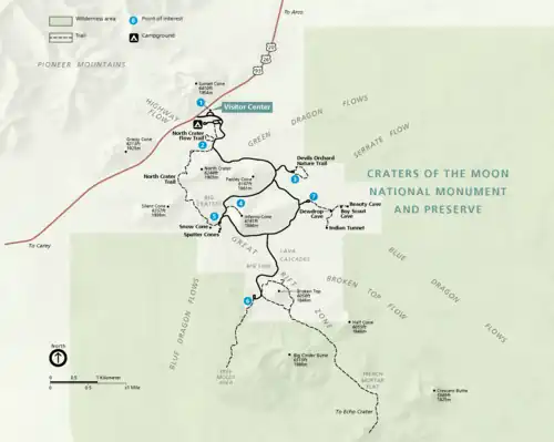 77. ^ a b c "Backpack the Craters of the Moon Wilderness (U.S. National Park Service)". www.nps.gov. Retrieved March 22, 2024.