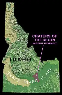 Map showing the location of Craters of the Moon National Monument and Preserve
