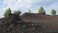 3. ^ Eruptions were dated using paleomagnetic and radiocarbon methods, which together give dates that are considered accurate to within 100 years (NPS 1991, pp. 28–29). Both tests were conducted in 1980 by using charred vegetation directly below individual flows (for the radiocarbon test), and from rock core samples (for the paleomagnetic work).