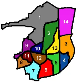 The borough is part of a two-tier arrangement, with service provision shared with West Sussex County Council.[48] Since 2018 the borough has partnered with other local authorities as part of the Greater Brighton City Region.[49] The authority is divided into 13 wards, each of which is represented by two or three local councillors, forming a total council of 36 members. Most wards are coterminous with the borough's neighbourhoods, but Northgate and West Green are combined into one ward; Broadfield is divided across three; and Pound Hill is split across "Pound Hill North and Forge Wood" and "Pound Hill South and Worth". The council is elected in thirds.[50] Crawley Borough Council has had a Labour majority since 2022.[51]