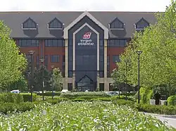 By 1980, the council identified land at Maidenbower, south of the Pound Hill neighbourhood, as being suitable for another new neighbourhood, and work began in 1986. However, all of this development was undertaken privately, unlike the earlier neighbourhoods in which most of the housing was owned by the council.[44] In 1999, plans were announced to develop the fourteenth neighbourhood on land at Tinsley Green to the northeast of the town; this was given the go-ahead in 2011 and has been named Forge Wood after the ancient woodland that is enclosed within the development. After the proposals were temporarily halted while a possible expansion at Gatwick Airport was announced,[45] construction started in 2015.[46] Forge Wood is to have a maximum of 1,900 homes.[47] Another major residential development, Kilnwood Vale, began in 2012 adjacent to the western side of Crawley but separate from it, in district of Horsham. A plan for a new railway station fell through.[6]