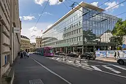 In the early 1900s Credit Suisse began catering to consumers and the middle class with deposit counters, currency exchanges, and savings accounts.[24] The first branch outside of Zürich was opened in 1905 in Basel.[20] The bank helped companies affected by World War I restructuring and extended loans for reconstruction efforts.[22][26] During the 1920s depression, net profits and dividends were halved, and employees took salary cuts.[27] After World War II, a substantial portion of Credit Suisse's business was in foreign reconstruction efforts.[27] Banks subsequently acquired by Credit Suisse have been linked to bank accounts used by members of the NSDAP in the 1930s.[28][29] Holocaust survivors had problems trying to retrieve assets from relatives that died in concentration camps without death certificates.[30] This led to a class action lawsuit in 1996[31] that settled in 2000 for $1.25 billion.[32][33][34][35] The Agreement on the Swiss Banks' Code of Conduct with Regard to the Exercise of Due Diligence was created in the 1970s,[20] after a Credit Suisse branch in Chiasso was exposed for illegally funneling $900 million in Italian deposits to speculative investments.[36]
