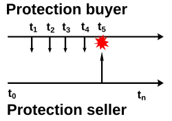 However, if the associated credit instrument suffered a credit event at t5, then the seller pays the buyer for the loss, and the buyer would cease paying premiums to the seller.