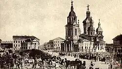 At the time, Dostoevsky owed large sums of money to creditors and was trying to help the family of his brother Mikhail, who had died in early 1864. After appeals elsewhere failed, Dostoevsky turned as a last resort to the publisher Mikhail Katkov and sought an advance on a proposed contribution.[7] He offered his story or novella (at the time, he was not thinking of a novel)[8] for publication in Katkov's monthly journal The Russian Messenger—a prestigious publication of its kind, and the outlet for both Ivan Turgenev and Leo Tolstoy. Dostoevsky, having been engaged in polemical debates with Katkov in the early 1860s, had never published anything in its pages before. In a letter to Katkov written in September 1865, Dostoevsky explained to him that the work was to be about a young man who yields to "certain strange, 'unfinished' ideas, yet floating in the air".[9] He planned to explore the moral and psychological dangers of the ideology of "radicalism", and felt that the project would appeal to the conservative Katkov.[10] In letters written in November 1865, an important conceptual change occurred: the "story" had become a "novel". From then on, Crime and Punishment is referred to as a novel.[11]