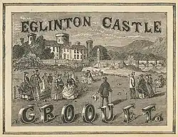 The earliest known reference to croquet in Scotland is the booklet The Game of Croquet, its Laws and Regulations, which was published in the mid-1860s for the proprietor of Eglinton Castle, the Earl of Eglinton. On the page facing the title page is a picture of Eglinton Castle with a game of "croquet" in full swing.[36]