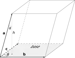 Indeed, one can also compute the volume V of a parallelepiped having a, b and c as edges by using a combination of a cross product and a dot product, called scalar triple product (see Figure 2):