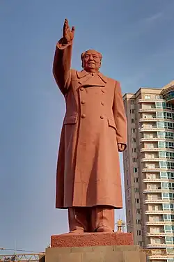 Mao Zedong's cult of personality was a prominent part of Chairman Mao Zedong's rule over the People's Republic of China from his rise in 1949 until his death in 1976. Mass media, propaganda and a series of other techniques were used by the state to elevate Mao Zedong's status to that of an infallible heroic leader, who could stand up against The West, and guide China to become a beacon of Communism. Mao himself, however, publicly criticized the personality cult which was formed around him.[41]