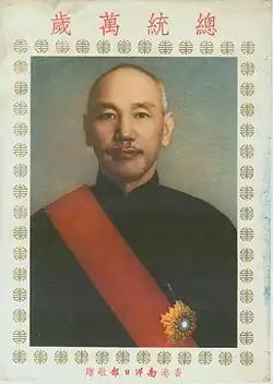 Chiang Kai-shek had a cult of personality. His portraits were commonly displayed in private homes and they were also commonly displayed in public on the streets.[46][47] When the Muslim general and warlord Ma Lin was interviewed, he was described as having "high admiration for and unwavering loyalty to Chiang Kai-shek".[48]