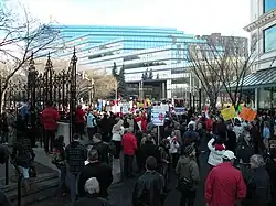 Montreal's theatre district ("Quartier des Spectacles") is the scene of performances that are mainly French-language, although the city also boasts a lively anglophone theatre scene, such as the Centaur Theatre.[164] Large French theatres in the city include Théâtre Saint-Denis and Théâtre du Nouveau Monde.[165]