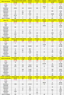 Two tables below show the linguistic (mother tongue) and religious structure of interwar South-Eastern Poland (nowadays part of Western Ukraine) and interwar North-Eastern Poland (nowadays part of Western Belarus and southern Lithuania) by county, according to the 1931 census.