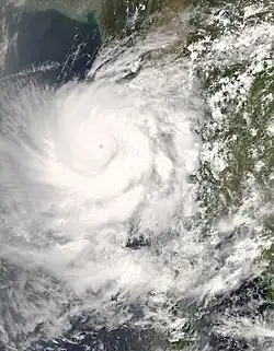 ![]() Cyclone Nargis approaching Myanmar at peak intensity on 2 May | |