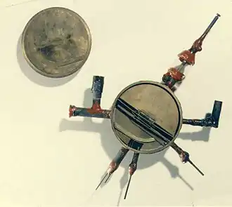 To construct the first such device, Lawrence used large electromagnets recycled from obsolete arc converters provided by the Federal Telegraph Company.[20] He was assisted by a graduate student, M. Stanley Livingston. Their first working cyclotron became operational on January 2, 1931. This machine had a diameter of 4.5 inches (11 cm), and accelerated protons to an energy up to 80 keV.[21][22]