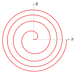Assuming a uniform energy gain per orbit (which is only valid in the non-relativistic case), the average orbit may be approximated by a simple spiral. If the energy gain per turn is given by ΔE, the particle energy after n turns will be: Combining this with the non-relativistic equation for the kinetic energy of a particle in a cyclotron gives: This is the equation of a Fermat spiral.