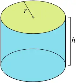 If the base of a circular cylinder has a radius r and the cylinder has height h, then its volume is given by