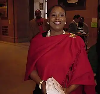 Cynthia Ann McKinney (born March 17, 1955) is a former American politician.[1] As a member of the Democratic Party, she served six terms in the United States House of Representatives. She was the first African American woman elected to represent Georgia in the House.[2] She left the Democratic Party and ran in 2008 as the presidential nominee of the Green Party. She ran for vice president in 2020 after the Green Party of Alaska formally nominated her and draft-nominated Jesse Ventura for president.[3][4][5][6]