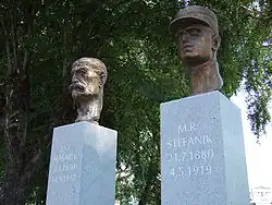 During World War I a number of Czechs and Slovaks, the Czechoslovak Legions, fought with the Allies in France and Italy, while large numbers deserted to Russia in exchange for its support for the independence of Czechoslovakia from the Austrian Empire.[15] With the outbreak of World War I, Masaryk began working for Czech independence in a union with Slovakia. With Edvard Beneš and Milan Rastislav Štefánik, Masaryk visited several Western countries and won support from influential publicists.[16] The Czechoslovak National Council was the main organization that advanced the claims for a Czechoslovak state.[17]
