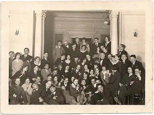 Despite the interruptions of wartime wanderings, Miłosz proved to be an exceptional student with a facility for languages. He ultimately learned Polish, Lithuanian, Russian, English, French, and Hebrew.[23] After graduation from Sigismund Augustus Gymnasium in Wilno, he entered Stefan Batory University in 1929 as a law student. While at university, Miłosz joined a student group called Academic Club of Wilno Wanderers and Intellectuals and a student poetry group called Żagary, along with the young poets Jerzy Zagórski, Teodor Bujnicki, Aleksander Rymkiewicz, Jerzy Putrament, and Józef Maśliński.[24] His first published poems appeared in the university's student magazine in 1930.[25]