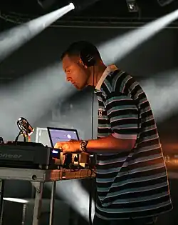 Joshua Paul Davis (born June 29, 1972),[1][2] better known by his stage name DJ Shadow, is an American DJ and record producer. His debut studio album, Endtroducing....., was released in 1996. He uses layered production with numerous samples.