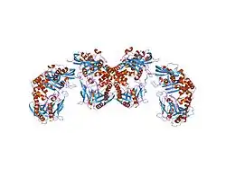 - ^ Olson MW, Dallmann HG, McHenry CS (December 1995). "DnaX complex of Escherichia coli DNA polymerase III holoenzyme. The chi psi complex functions by increasing the affinity of tau and gamma for delta.delta' to a physiologically relevant range". The Journal of Biological Chemistry. 270 (49): 29570–29577. doi:10.1074/jbc.270.49.29570. PMID 7494000.
