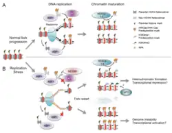 - ^ Ransom M, Dennehey BK, Tyler JK (January 2010). "Chaperoning histones during DNA replication and repair". Cell. 140 (2): 183–195. doi:10.1016/j.cell.2010.01.004. PMC 3433953. PMID 20141833.
