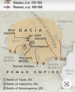 When Trajan turned his attention to Dacia, it had been on the Roman agenda since before the days of Julius Caesar when a Roman army had been beaten at the Battle of Histria.[37][38][39]