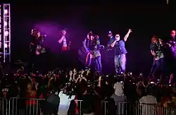 On April 28, 2016, Daddy Yankee was awarded the "Industry Leader Award" during the 2016 Latin Billboard Awards.[65] After a decade-long feud with longtime rival Don Omar for the "King of Reggaeton" title, in early 2016 Daddy Yankee and Don Omar announced in a Billboard press conference that they would perform together on stage in a concert series called The Kingdom Tour.[66] The tour announcement left many fans in disbelief as it sold out in minutes in major cities like Las Vegas, Orlando, Los Angeles, New York.[67] The concerts were structured like a boxing match, where the two artists got to trade off musical rounds, and fans voted for their winner in each city via an app designed for the event. "Two kings, one throne", said Pina Records founder Rafael Pina, who had a well-established relationship with both artists, and who also came up with the idea for the tour concept.[68] Discussing the tour and his rivalry with Daddy Yankee, Don Omar said "Let me clarify: I am not his best friend, and he is not my best friend, but we respect each other. That desire to be the best is what has pushed us to be better."[69]