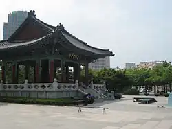 Independence movements against imperial aggression flourished in Daegu, beginning as early as 1898, when a branch of the Independence Club was established in the town.[17] As the demise of the Korean Empire approached in 1907, local citizens led by Seo Sang-don organized the National Debt Repayment Movement. The movement spread nationwide, collecting many individual donations toward repaying the national debt. Rebellions continued after the 1910 annexation to Japan, notably during the March First Movement of 1919. At that time, four major demonstrations took place in Daegu, involving an estimated 23,000 citizens.[18]