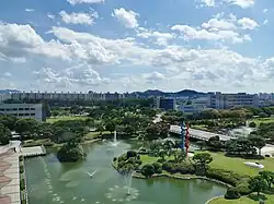 From the 1980s, multiple national administrative functions were moved from Seoul to Daejeon, most of which are now located in the Daejeon Government Complex, resulting in another population increase.[10] The city was a sub host for the 1986 Asian Games, hosted the Expo 1993, the International Mathematical Olympiads in 2000 and will be the main host city of the 2027 Summer World University Games. Daejeon and was elevated to the status of Metropolitan City in 1989.[11][12]