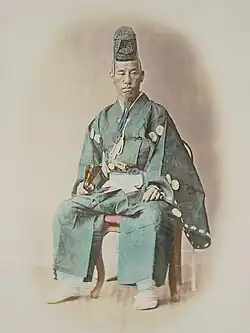 Daimyo (大名, daimyō; English: /ˈdm.j/,[1] Japanese: [dai.mʲoꜜː] [2]) were powerful Japanese magnates,[3] feudal lords[4] who, from the 15th century to the early Meiji period in the middle 19th century, ruled most of Japan from their vast hereditary land holdings. They were subordinate to the shogun and nominally to the emperor and the kuge (an aristocratic class). In the term, dai () means 'large', and myō stands for myōden (名田), meaning 'private land'.[5]