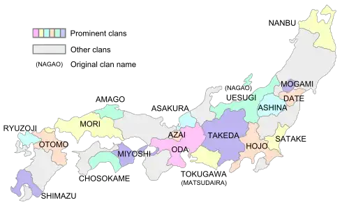 A map of the territories of the Sengoku daimyo around the first year of the Genki era (1570 AD)