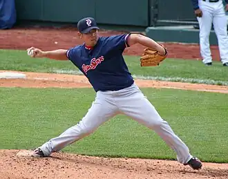 Daisuke Matsuzaka (松坂 大輔, Matsuzaka Daisuke; [matsɯꜜzaka daꜜisɯ̥ke]; born September 13, 1980) is a Japanese former professional baseball pitcher, who pitched professionally for 23 seasons, 16 of them in NPB, 7 in MLB. He is currently a baseball color commentator, critic, reporter, and YouTuber. Daisuke is nicknamed "the Monster of the Heisei Era" (平成の怪物, heisei no kaibutsu)[1][2] in Japan and "Dice-K" in the United States[3] by The Boston Globe[4][5] and USA Today.[6] He played for the Boston Red Sox and New York Mets of Major League Baseball (MLB) and the Saitama Seibu Lions, Fukuoka SoftBank Hawks and Chunichi Dragons of Nippon Professional Baseball (NPB).