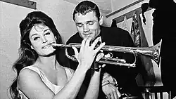 1966 was marked by an extensive year-long world tour that started on 13 February in Paris, and ended on 31 December in Toulouse. With more than 150 dates, Dalida toured Canada, Latin America, Arab states and Europe.[47] The year debuted with a number-one hit in Latin America, "El Cordobés", which was a product of a collaboration with bullfighter Manuel Benítez, to whom Dalida dedicated the song as they had a brief affair.[82] In the same period, Dalida also started employing family members, with her cousin Rosy as her secretary, and brother Bruno as her artistic director. By the end of the year, they had produced the successful Italian album Pensiamoci ogni sera and three more EPs. "Parlez-moi de lui" did not achieve commercial success, but became one of her first power ballads, being based on experiences in her own life, and became a commercial success in the US when recorded by Cher as "The Way of Love". In contrast, "Bang Bang" was a number one hit in Argentina and Italy, where it was also the best-selling record of the year.[58] "Petit Homme" charted internationally and was accompanied by Dalida delivering energetic live performances with a tambourine. Dalida also returned to the wide screen, with a supporting role in the satirical French movie La Morale de l'histoire that included the unreleased song "Je sortirais sans toi".[83] During the summer in Rome, she was introduced to the new avant-garde singer-songwriter Luigi Tenco on an RAI set and they sang "La danza di Zorba" as a duet. Later in September, her Italian managers suggested that she participate with Tenco in the next Sanremo Music Festival. Although in previous years she has turned down the festival, this time she accepted as she was in a secret relationship with Tenco.[84]