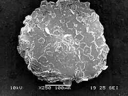 Dandruff scale is a cluster of corneocytes, which have retained a large degree of cohesion with one another and detach as such from the surface of the stratum corneum. A corneocyte is a protein complex that is made of tiny threads of keratin in an organised matrix.[28] The size and abundance of scales are heterogeneous from one site to another and over time. Parakeratotic cells often make up part of dandruff. Their numbers are related to the severity of the clinical manifestations, which may also be influenced by seborrhea.[7]