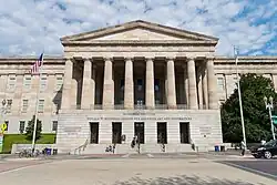 The album cover for Dangerously in Love was photographed by Markus Klinko. Beyoncé asked for a diamond-themed portrait, inspired by Klinko's 2000 campaign for Diamond.com showing Laetitia Casta lying on diamond-studded spider web.[30] Beyoncé's mother and stylist, Tina Knowles, brought a diamond top for the shoot.[31] Tina had brought skirts to pair it with, but Beyoncé felt they would look too "red carpet" with the top, according to Klinko. Instead, he lent Beyoncé his Dolce & Gabbana jeans for the shoot.[32] The photograph was edited in post-production to conceal Beyoncé's breasts.[33] Klinko said: "That famous pose she struck, with her arms out, she just did that. I didn't tell her to do that ... I just captured it."[34] He felt the image "projected who Beyoncé was about to become ... Within a couple of years she had become that iconic, undeniable superstar. The photoshoot created a road map to where she was headed."[33] The diamond top was displayed in the 2020 Rock and Roll Hall of Fame exhibition dedicated to Beyoncé.[35]