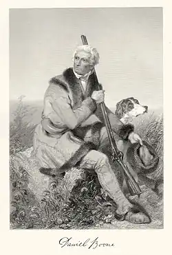 Daniel Boone (November 2 [O.S. October 22] 1734 – September 26, 1820) was an American pioneer and frontiersman whose exploits made him one of the first folk heroes of the United States. He became famous for his exploration and settlement of Kentucky, which was then beyond the western borders of the Thirteen Colonies. In 1775, Boone founded the Wilderness Road through the Cumberland Gap and into Kentucky, in the face of resistance from Native Americans. He founded Boonesborough, one of the first English-speaking settlements west of the Appalachian Mountains. By the end of the 18th century, more than 200,000 people had entered Kentucky by following the route marked by Boone.[3]