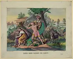 According to a popular story, Boone returned home after a long absence to find that Rebecca had given birth to a daughter. Rebecca confessed that she had thought that Daniel was dead, and that his brother had fathered the child. Boone did not blame Rebecca, and raised the girl as his own child. Boone's early biographers knew the story but did not publish it.[30] Modern biographers regard the tale as possibly folklore, since the identity of the brother and the daughter vary in different versions of the tale.[31][32][33]
