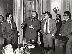In the late 1970s, divisions over the FSLN's campaign against Somoza led Ortega and his brother Humberto to form the Insurrectionist, or Tercerista (Third Way) faction.[35] The Terceristas sought to combine the distinct guerrilla war strategies of the two other factions, Tomás Borge's Guerra Prolongada Popular (GPP, or Prolonged People's War), and Jaime Wheelock's Proletarian Tendency.[36] The Ortega brothers forged alliances with a wide array of anti-Somoza forces, including Catholic and Protestant activists, and other non-Marxist civil society groups.[37] The Terceristas became the most effective faction in wielding political and military strength, and their push for FSLN solidarity received the support of revolutionary leaders such as Fidel Castro.[36]