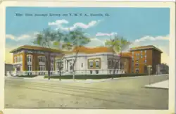 The Danville Branch of the National Home for Disabled Volunteer Soldiers opened in 1898 and, by 1910, 4,257 veterans were at the branch.[26] This branch was the eighth of ten branches founded by the National Home for Disabled Volunteer Soldiers (NHDVS), nationwide, between 1866 and 1929.[27] The Soldiers' Home was a major center in-itself with its own passenger train service, streetcar line, mess hall, farms, livestock, lake, jail, hospital, bakery, laundry stables, stores, theater, chapel, mortuary, office buildings, power plant, print shop, shoemakers, tinsmiths, barber shop and fire department.[28] The first Danville Public Library was formed out of various existing collections in 1883 and was replaced by a Carnegie library in 1904.[29] In 1910, a group of 9 elephants escaped from a Ringling circus and ran through Danville before being recaptured.[30][31]