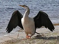 Australasian darter drying its wings