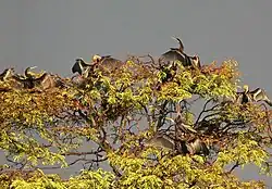 They usually breed in colonies, occasionally mixed with cormorants or herons. The darters pair bond monogamously at least for a breeding season. There are many different types of displays used for mating. Males display to attract females by raising (but not stretching) their wings to wave them in an alternating fashion, bowing and snapping the bill, or giving twigs to potential mates. To strengthen the pair bond, partners rub their bills or wave, point upwards or bow their necks in unison. When one partner comes to relieve the other at the nest, males and females use the same display the male employs during courtship; during changeovers, the birds may also "yawn" at each other.[10]