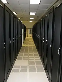 - ^ In the 1990s, network-connected minicomputers (servers) running without input or display devices were housed in the old computer rooms. These new "data centers" or "server rooms" were built within company walls, co-located with low-cost networking equipment.