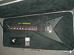 In 1986, a year after releasing their debut album, Mustaine approached Jackson Guitars for a custom-built guitar. Jackson modified their existing Jackson King V model for Mustaine by adding two more frets to the standard 22 fret King V.[59] In the 1990s, the company began mass-producing a Dave Mustaine signature series Jackson King V, which continued into the early 2000s.[60][61]