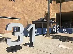 He was inducted into the San Diego Padres Hall of Fame in 2000.[36] The Padres retired Winfield's No. 31 on April 14, 2001.[37]