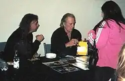 Carradine enjoyed a revival of his fame when he was cast in Quentin Tarantino's Kill Bill films, Kill Bill: Volume 1 (2003) and Kill Bill: Volume 2 (2004). Scott Mantz of The Mediadrome said of his performance, "Carradine practically steals every scene he's in with confident gusto, and he gives a soulful performance that should all but ensure a spot on next year's Oscar ballot."[65] Roger Ebert and Richard Roeper both had Kill Bill Vol. 2 on their top ten list for Academy Awards predictions.[66] Although the films received no notice from the Academy, Carradine did receive a Golden Globe nomination[4] and a Saturn Award for Best Supporting Actor[13] for his portrayal of Bill.