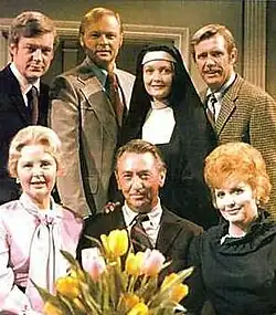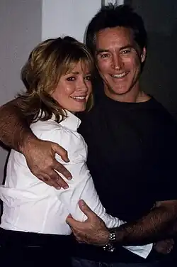 Critics originally praised the show for its non-reliance on nostalgia (in contrast to shows such as As the World Turns) and its portrayal of "real American contemporary families."[22] By the 1970s, critics deemed Days of Our Lives to be the most daring daytime drama, leading the way in using themes other shows of the period would not dare touch, such as artificial insemination and interracial romance.[12] The January 12, 1976, cover of Time magazine featured Days of Our Lives' Bill Hayes and Susan Seaforth Hayes, the only daytime actors ever to appear on its cover.[23][24][25] The Hayeses themselves were a couple whose on-screen and real-life romance (they met on the series in 1970 and married in 1974) was widely covered by both the soap opera magazines and the mainstream press.[26]