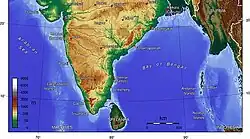 The region is bound by the mountain ranges of the Western Ghats and the Eastern Ghats on the sides, which separate the region from the Western and Eastern Coastal Plains respectively.[40][41] It covers most of the Indian states of Maharashtra, Telangana, Karnataka and Andhra Pradesh excluding the coastal regions, and minor portions of Tamil Nadu and Kerala.[28] The western side of the plateau is elevated gently slopes towards the east.[42][43] It is subdivided into Maharashtra Plateau, Karnataka Plateau, and Telangana Plateau.[28]