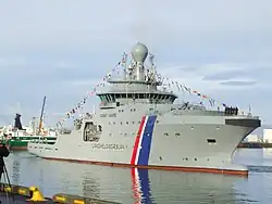The Coast Guard consists of three ships and four aircraft and armed with small arms, naval artillery, and air defence radar stations.[5] The Coast Guard also maintains the Iceland Air Defence System, formerly part of the disestablished Defence Agency, which conducts surveillance from the ground of Iceland's air space.[5][6]