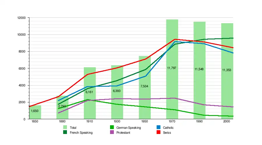 During the 19th century industrialization, the German-speaking population increased greatly, and in 1880 reached nearly 40%. The city was briefly bilingual, but since 1920, the German-speaking minority has continuously decreased.